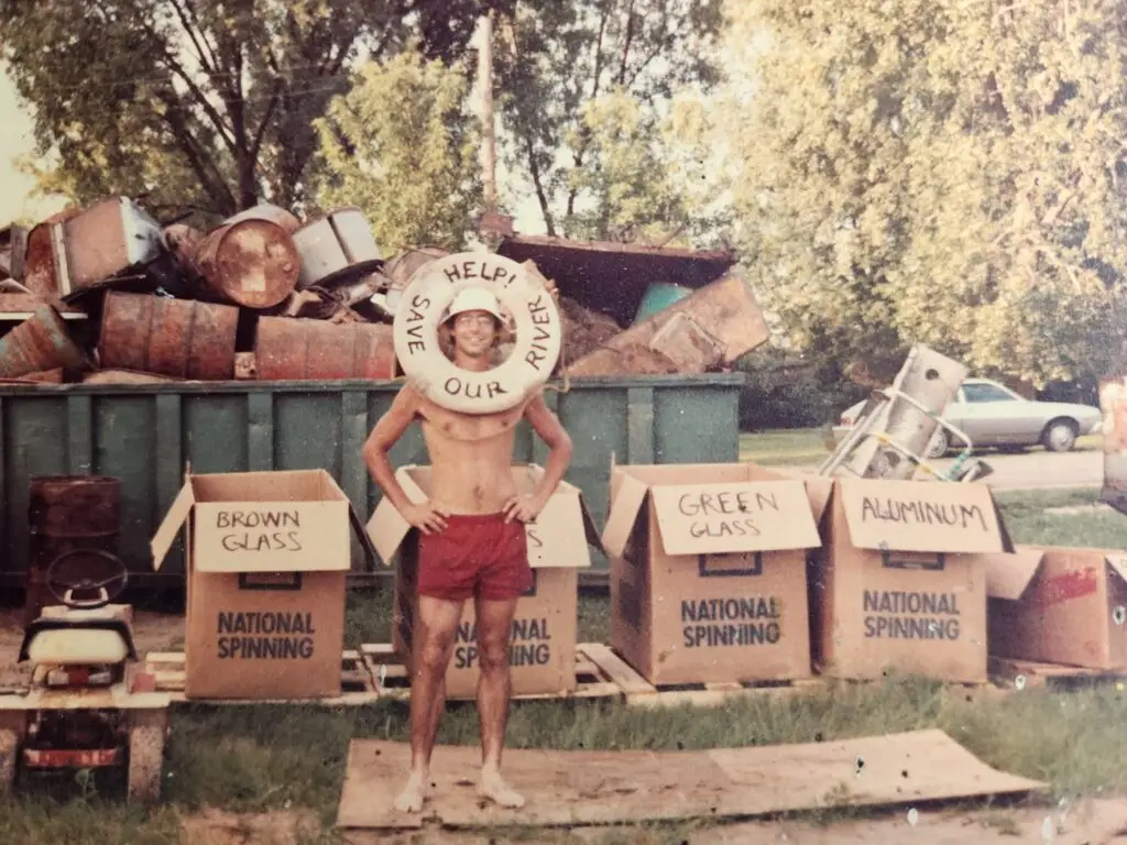 “In 1988, Earthworks, “All-Purpose Cleaner,” participated in a raft race from Chickamauga Dam to Ross’s Landing. The Tox Tug, our trusty vessel built by Prentice Hicks with recycled materials, including hand-crafted oars, came in 2nd through shear determination. Two things dawned on us…